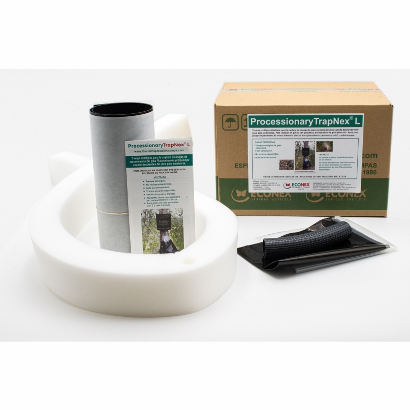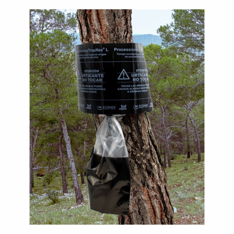 Le piège PROCESSIONARYTRAPNEX® Lest utilisé pour capturer les chenilles processionnaires du pin, Thaumetopoeapityocampa, lorsqu'elles descendent le long du tronc des arbres où elles ont formé des poches. Il profite du comportement agrégatif et social de cette espèce pour capturer l'ensemble du groupe de larves lorsqu'elles se dirigent vers le sol pour s'enterrer et se transformer en chrysalide.